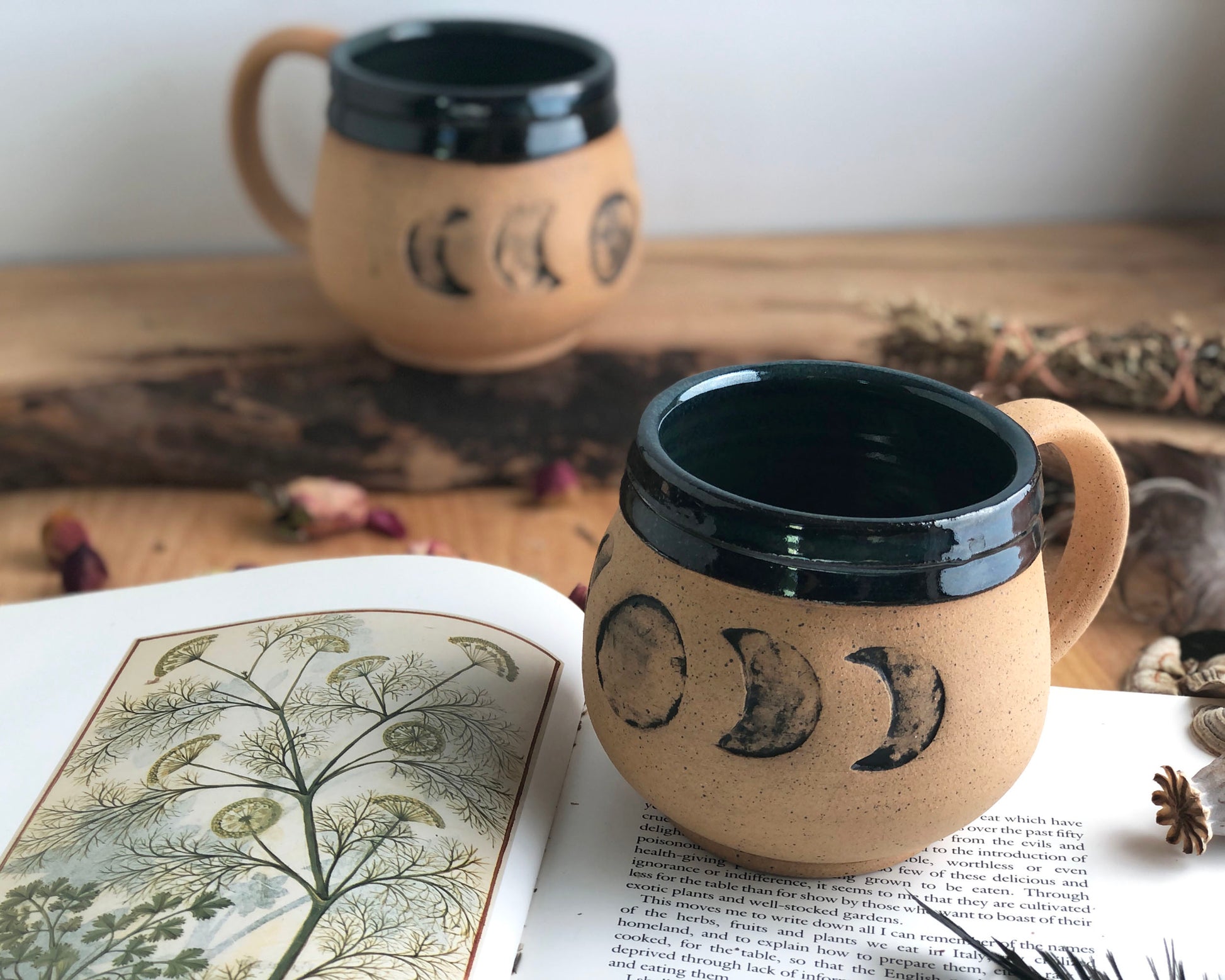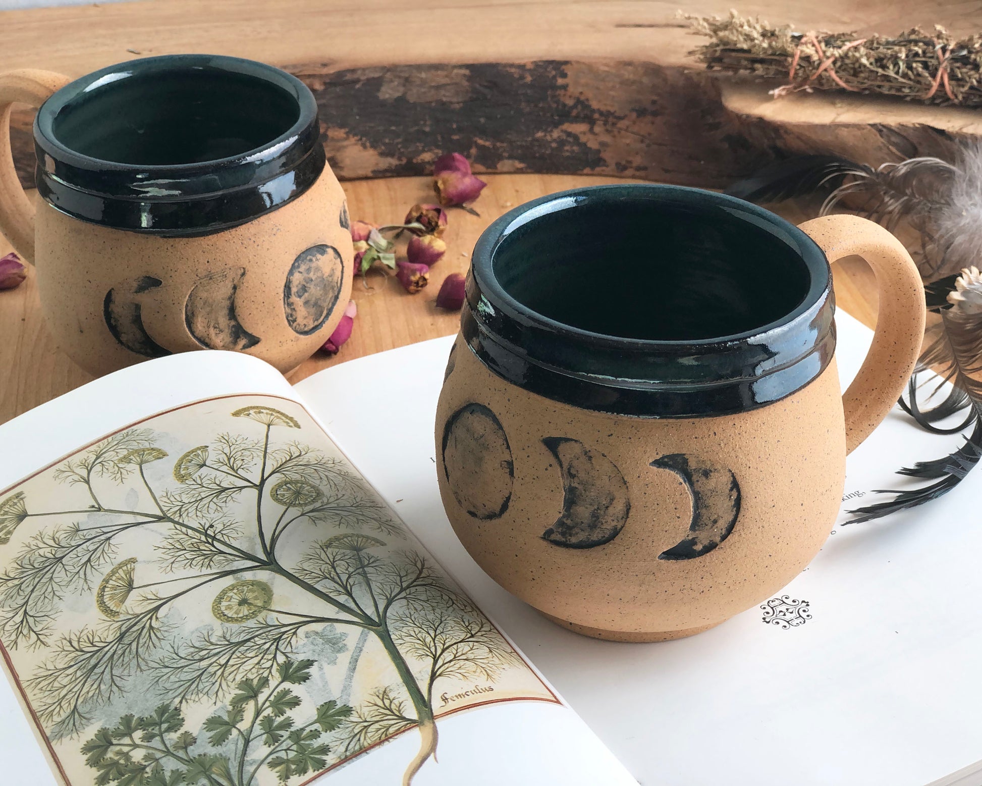 Wheel-thrown and hand-sculpted, this unique coffee or tea mug is for the romantic moon lover! Earthy, gothic & witchy all in one.