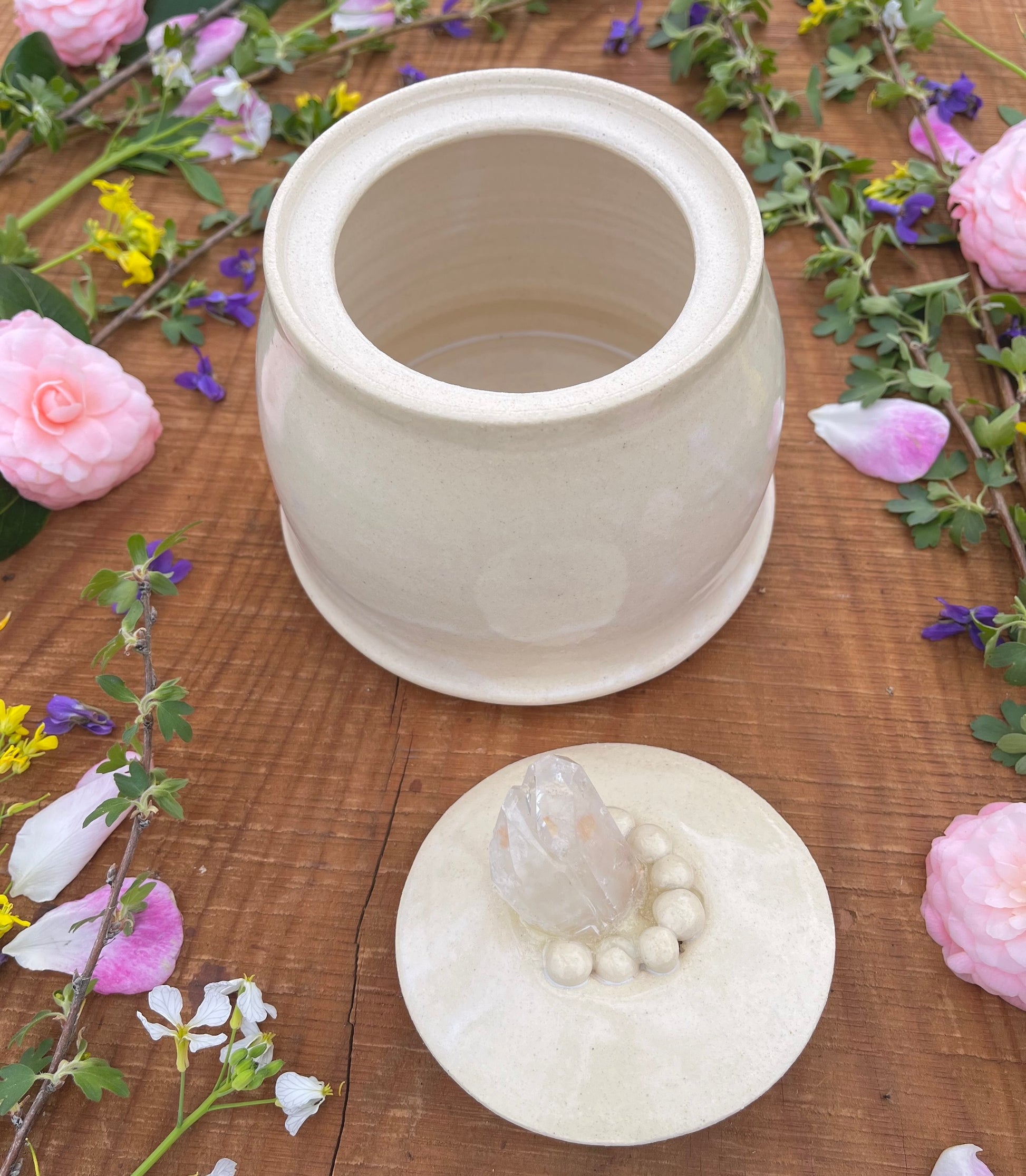 Handmade Ceramic Treasure Jar with Quartz Crystal - Lidded Ceramic Jar