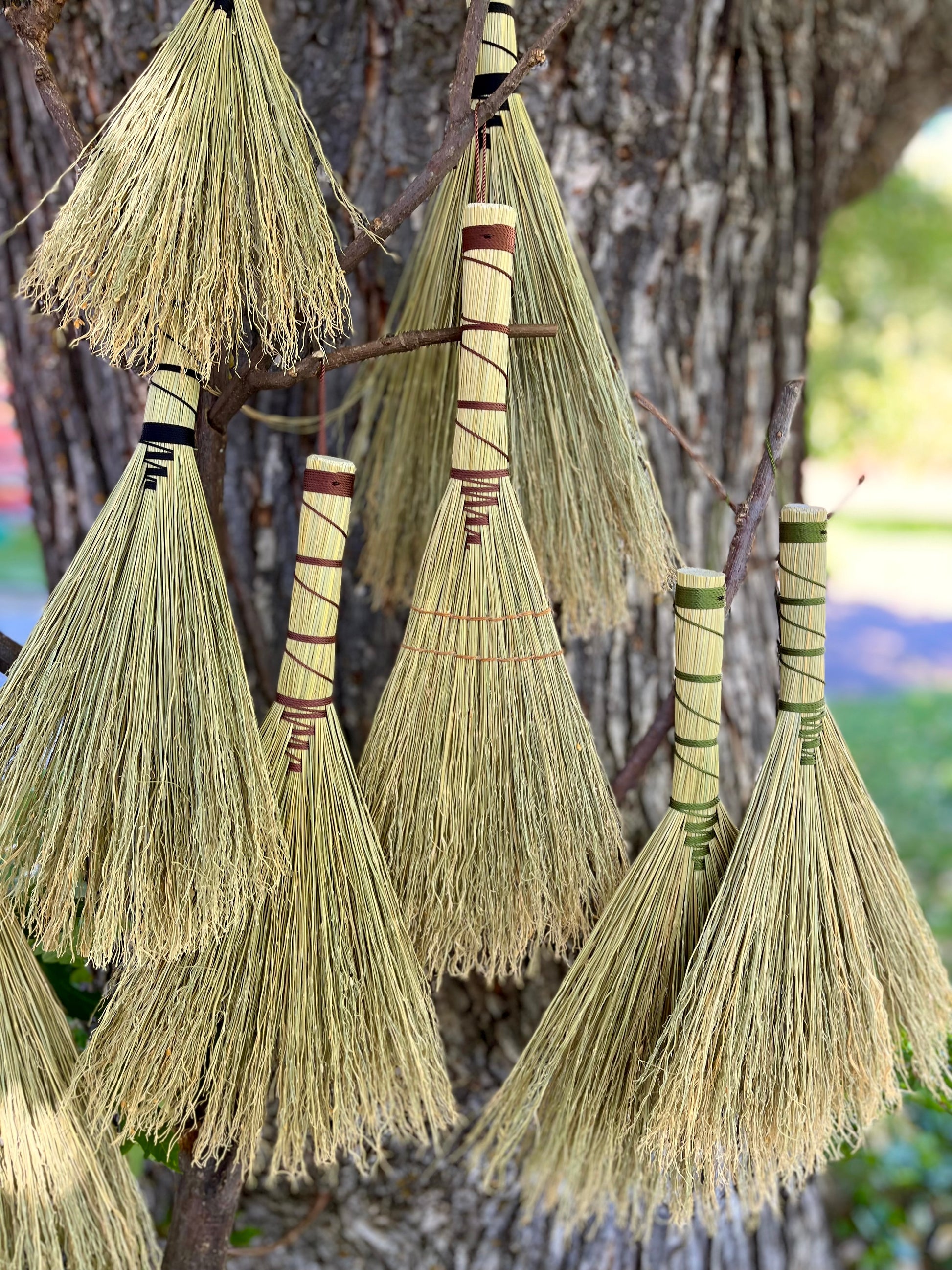 These unique brooms are handmade by me! Hawk Tail style brooms are perfect for cleaning up around the house, and beautifully aesthetic whilst hanging on the wall.